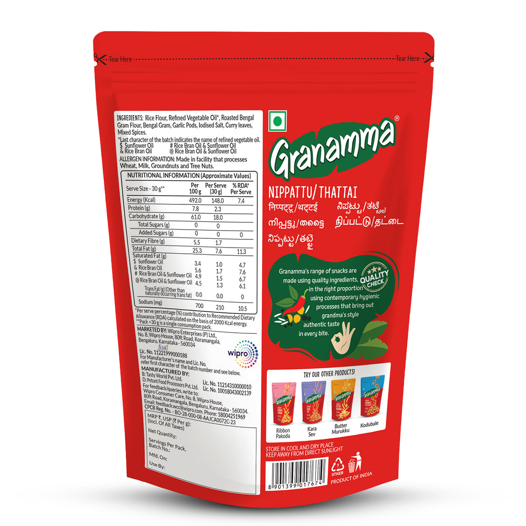 Wipro Presents the Granamma range of Traditional South Indian Everyday Snacks, made using grandmother's recipe. Granamma snacks don't contain any added preservatives.