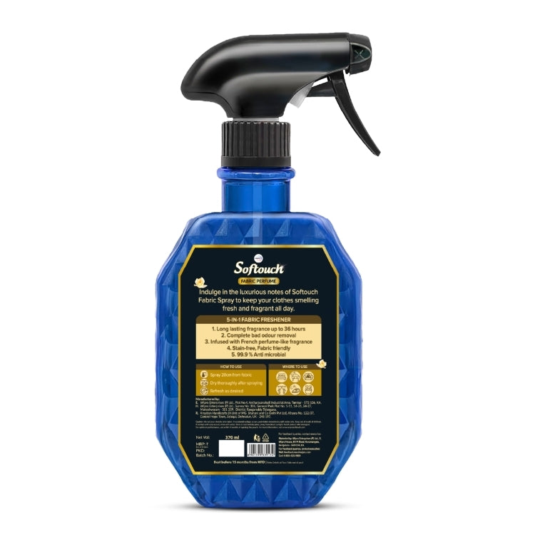Softouch Fabric perfume Spray 350 ml| Instant fragrance| Eliminates odours on Clothes, Curtains, Sofa, Cushions, Carpets, Bedding